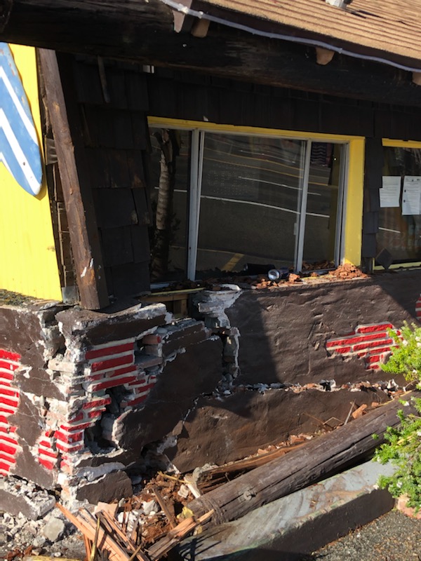 Highway lost control of the vehicle causing it to collide with a local restaurant. The